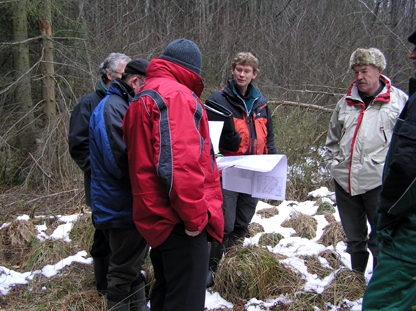 Regeneration des Hochmoors Blitzenreuter Seenplatte. Bau von Spundwänden und setzen des Überlaufs (Fotos von Sabine Harms und pluspunkt). Projektbeschrieb